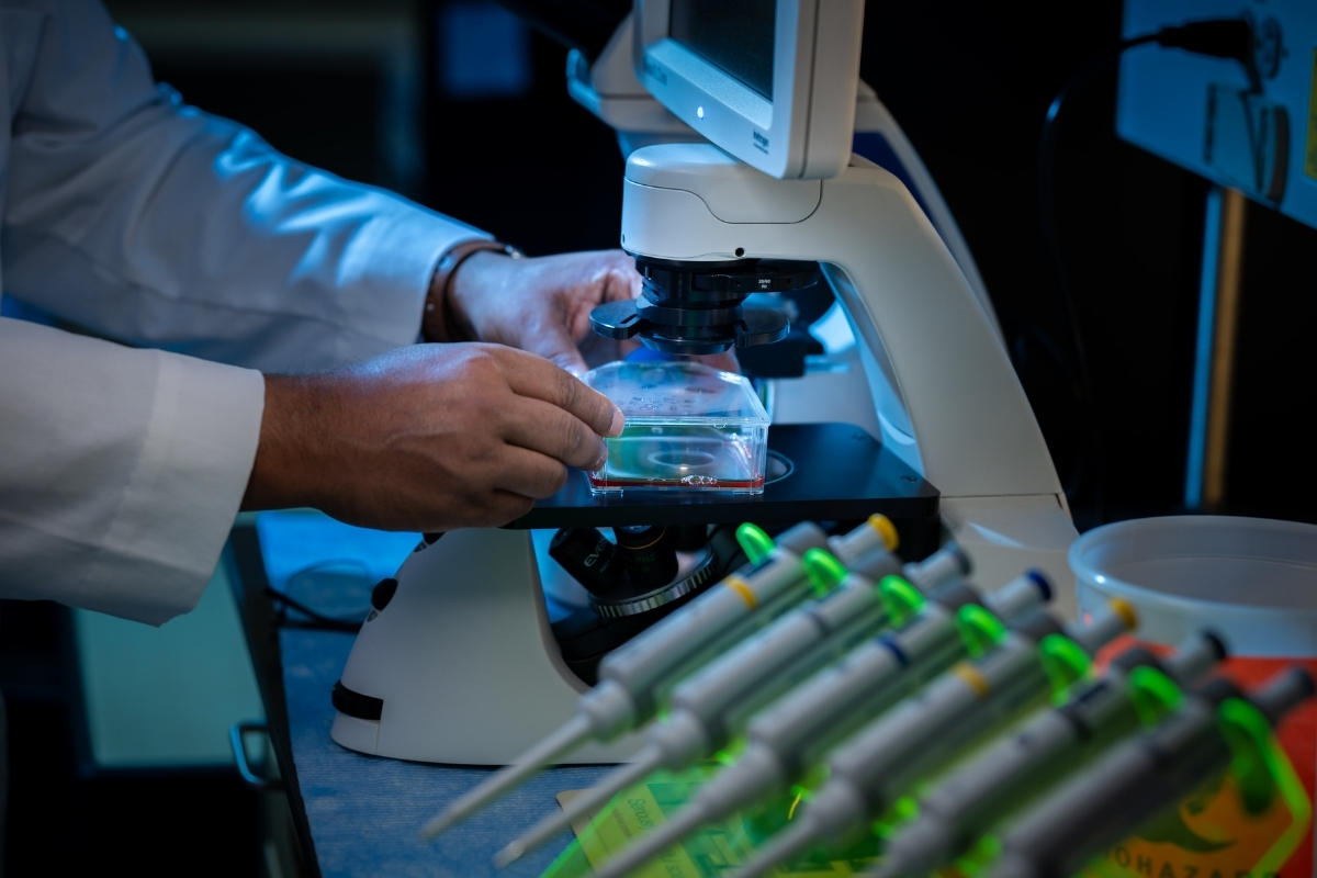 Additionally, the lab has an electronic cigarette/vaping exposure machine, pulmonary function test equipment for rodents, and a Keyence All-in-One microscopy system for fixed and live cell multicolor imaging.